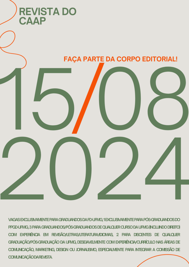 Estamos com inscrições abertas para o processo seletivo de novos membros para o Corpo Editorial da Revista do CAAP. Se você tem interesse em contribuir voluntariamente para o avanço do conhecimento acadêmico e ganhar experiência valiosa, essa é a sua oportunidade!