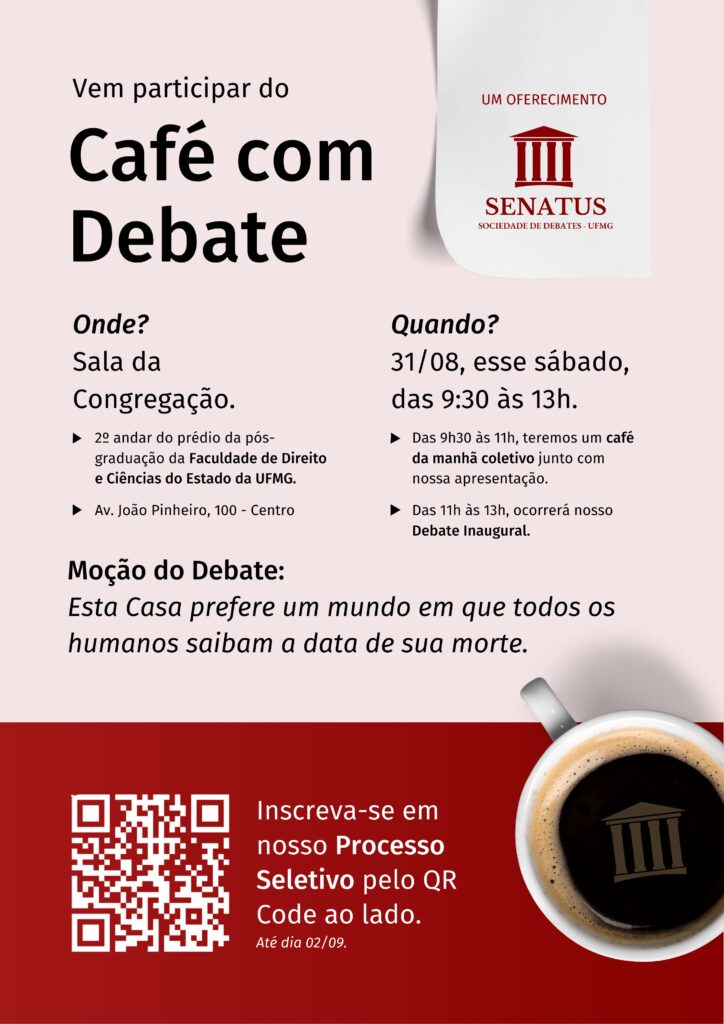 Senatus é a Sociedade de Debates da UFMG. Somos parte de um circuito nacional, que inclui mais de 20 projetos de extensão de universidades do Sul ao Nordeste do Brasil. Desenvolvemos, em encontros semanais, habilidades de oratória, retórica, análise de discursos e argumentação, por meio de capacitações voltadas para duas modalidades competitivas de reconhecimento internacional: o Public Speaking (PS), focado no aprimoramento da fala, e o Debate modelo British Parliamentary (BP), que transforma o debate oral em uma verdadeira (e literal) competição.