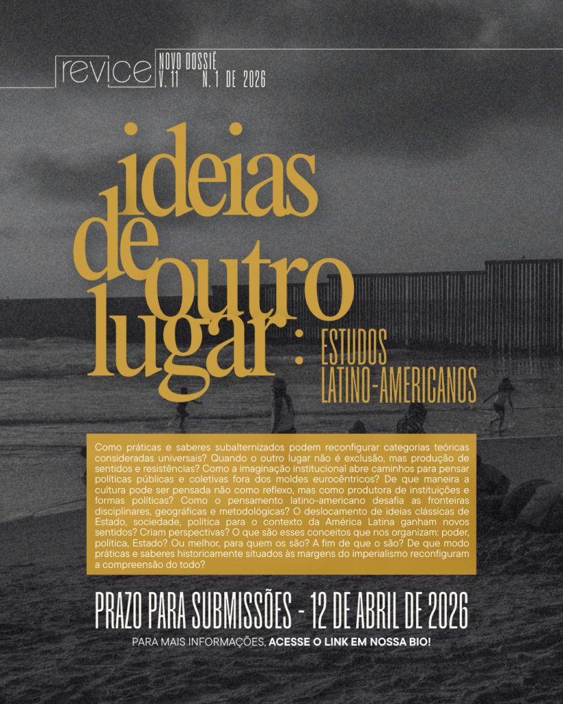 É com enorme prazer que a Equipe Editorial da Revista de Ciências do Estado (REVICE) da UFMG torna pública a presente chamada, referente à composição do novo dossiê do volume 11, número 1, cujo tema está intitulado: “Ideias de Outro Lugar: Estudos Latino-americanos”.