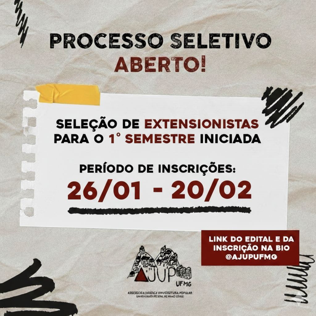 A Assessoria Jurídica Universitária Popular (AJUP/UFMG) torna pública a