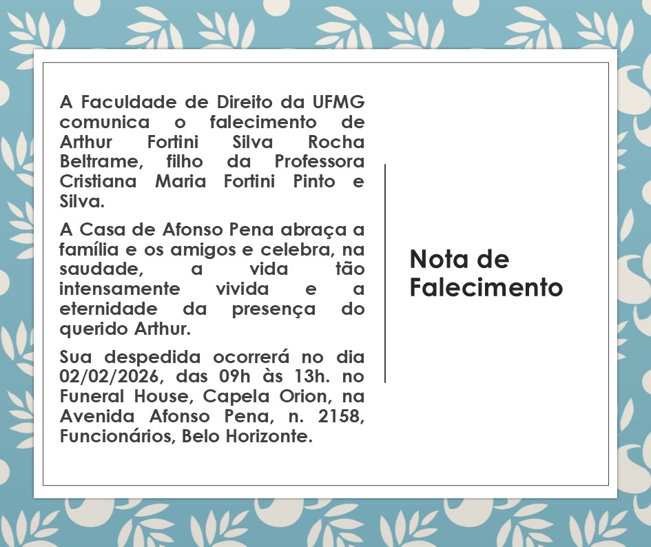 NOTA DE FALECIMENTO. Arthur Fortini Pinto e Silva (filho da Professora Cristiana Maria Fortini Pinto e Silva). Postado por ATI em 02/fev/2026 Postado por ATI em 02/fev/2026