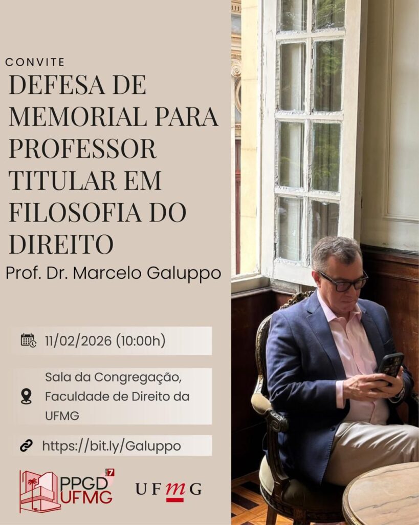 CONVITE- Defesa de memorial professor titular Marcelo Galuppo. Postado por ATI em 04/fev/2026 Postado por ATI em 04/fev/2026
