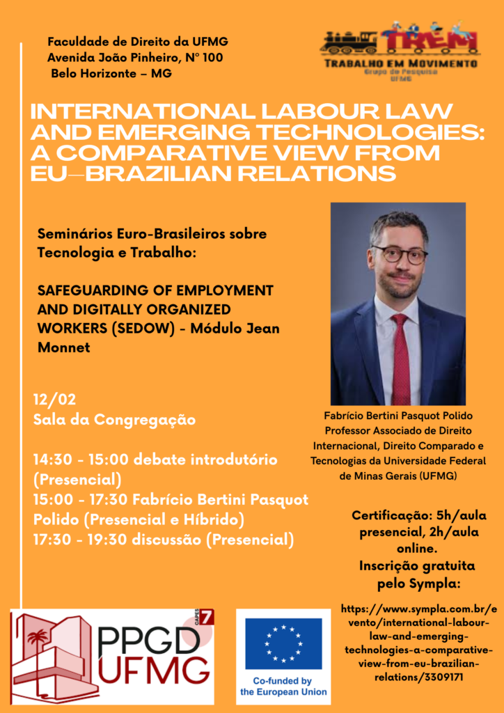 DIVULGAÇÃO. Evento 12/02 | SEMINÁRIOS EURO-BRASILEIROS SOBRE TECNOLOGIA E TRABALHO | PPGD/UFMG-Modulo Jean Monnet Postado por ATI em 12/fev/2026 Postado por ATI em 12/fev/2026