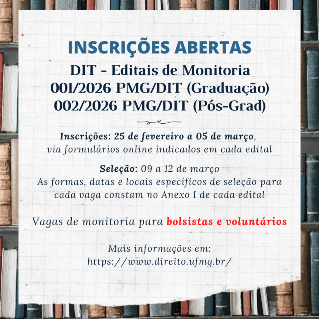 INSCRIÇÕES ABERTAS – DIT – Editais de Monitoria 001/2026 PMG/DIT e 002/2026 PMG/DIT/PosGrad