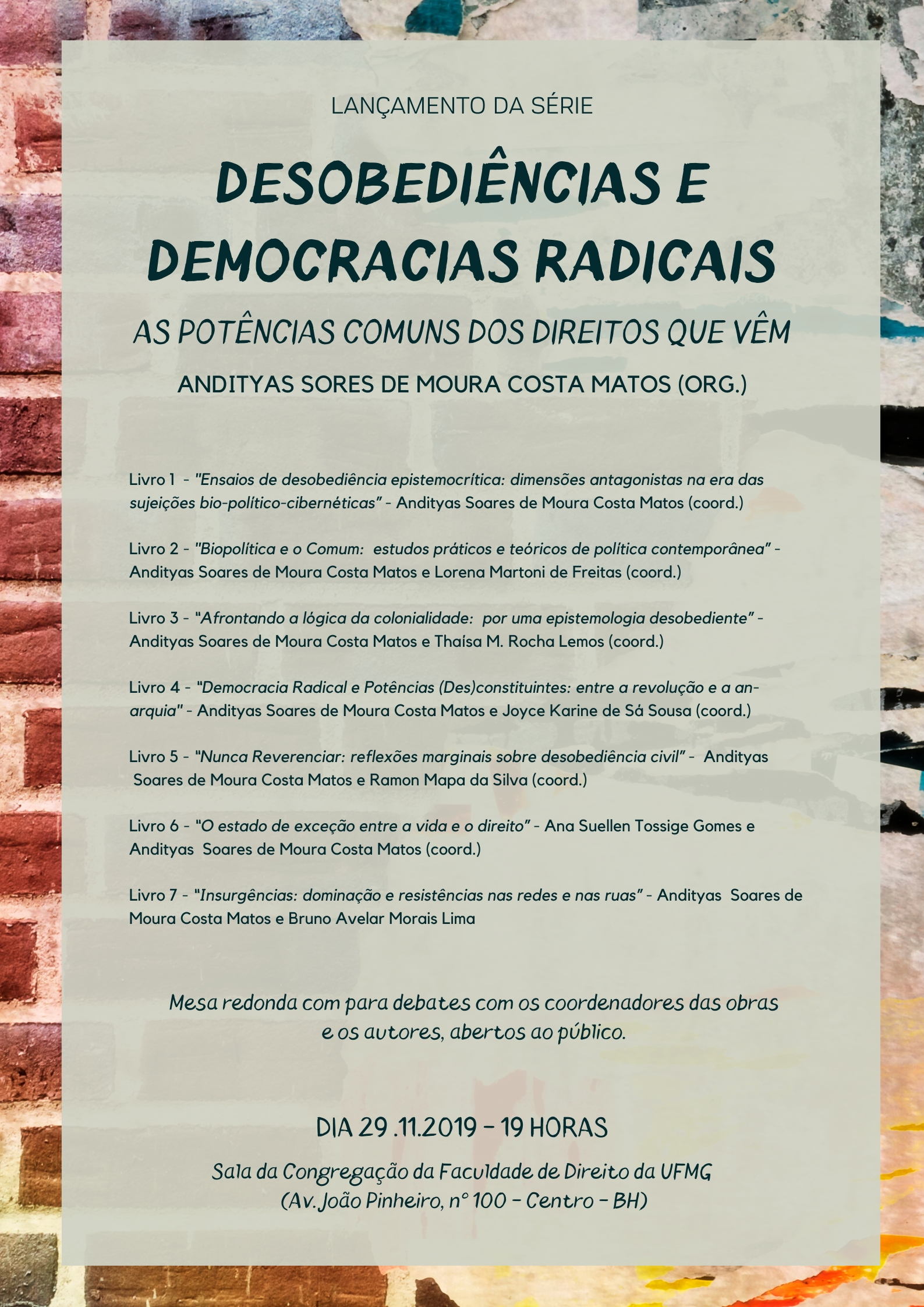 Lançamento de livros da série DESOBEDIÊNCIAS E DEMOCRACIAS RADICAIS: A POTÊNCIA COMUM DOS DIREITOS QUE VÊM Postado por ATI em 20/nov/2019 Postado por ATI em 20/nov/2019