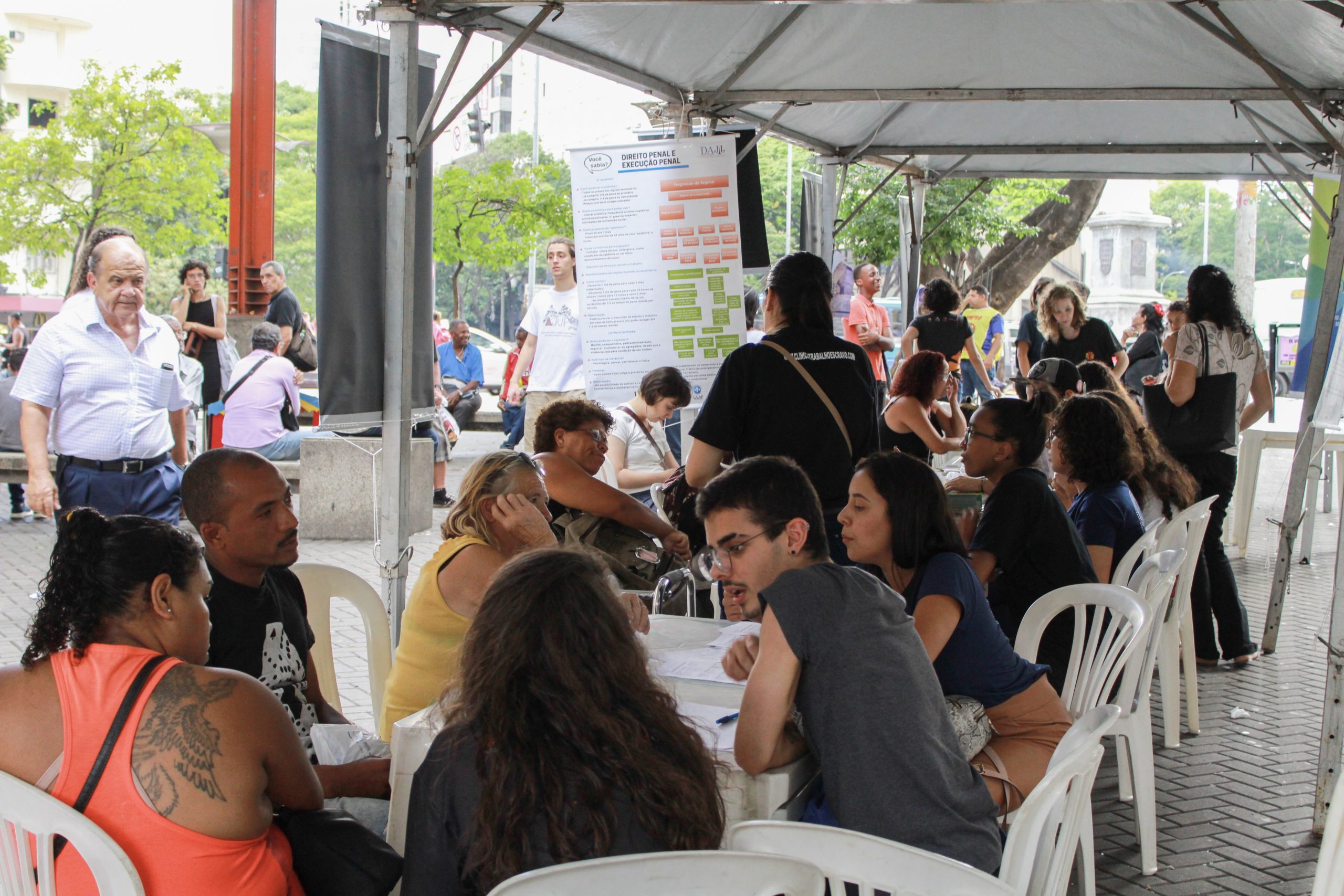 Na última sexta-feira, dia 22 de novembro de 2019, aconteceu na Praça Sete de Setembro a primeira edição do “UFMG nas Ruas”, ação promovida por oito Projetos de Extensão da Faculdade de Direito e Ciências do Estado da UFMG. Idealizada por alunas e alunos extensionistas, com o apoio de seus professores coordenadores, realizaram o evento o Polos de Cidadania, a Divisão de Assistência Judiciária (DAJ-UFMG), a Assessoria Jurídica Universitária Popular (AJUP), o Grupo de Extensão e Pesquisa Re-Habitare, a Clínica de Direitos Humanos (CdH-UFMG), a Clínica de Trabalho Escravo, o Diverso e o Ciranda. O objetivo foi estreitar os laços da Universidade com a população de Belo Horizonte por meio do atendimento da população. Ofereceu-se solução de dúvidas jurídicas e orientação sobre temas ligados às áreas de atuação de cada Projeto participante, informando a todos sobre seus direitos e como acessá-los.