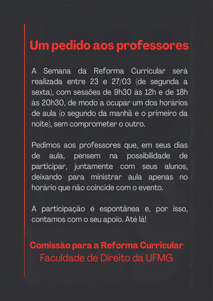 | Divulgação | Carta Aberta à Comunidade Acadêmica da FD UFMG |